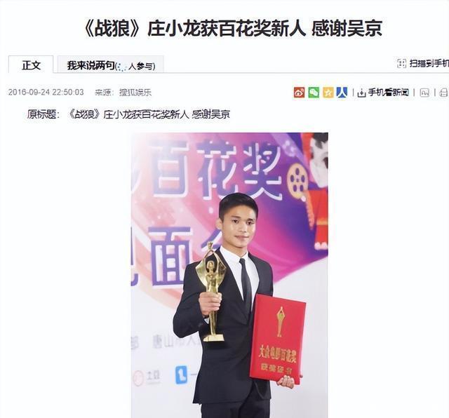 所谓传奇,不过是把别人放弃的时光,都用来打磨自己。 所谓强者,从来不用外界的标准定义自己,而是用实力活成自己的光。 这,就是庄小龙的故事——一个小个子的逆袭传奇。 【免责声明】 文章描述过程、图片都来源于网络,此文章旨在倡导社会正能量,无低俗等不良引导。 如涉及版权或者人物侵权问题,请及时联系我们,我们将第一时间删除内容! 如有事件存疑部分,联系后即刻删除或作出更改。 信息来源 《战狼》庄小龙获百花奖新人感谢吴京.搜狐娱乐.2016-09-24
